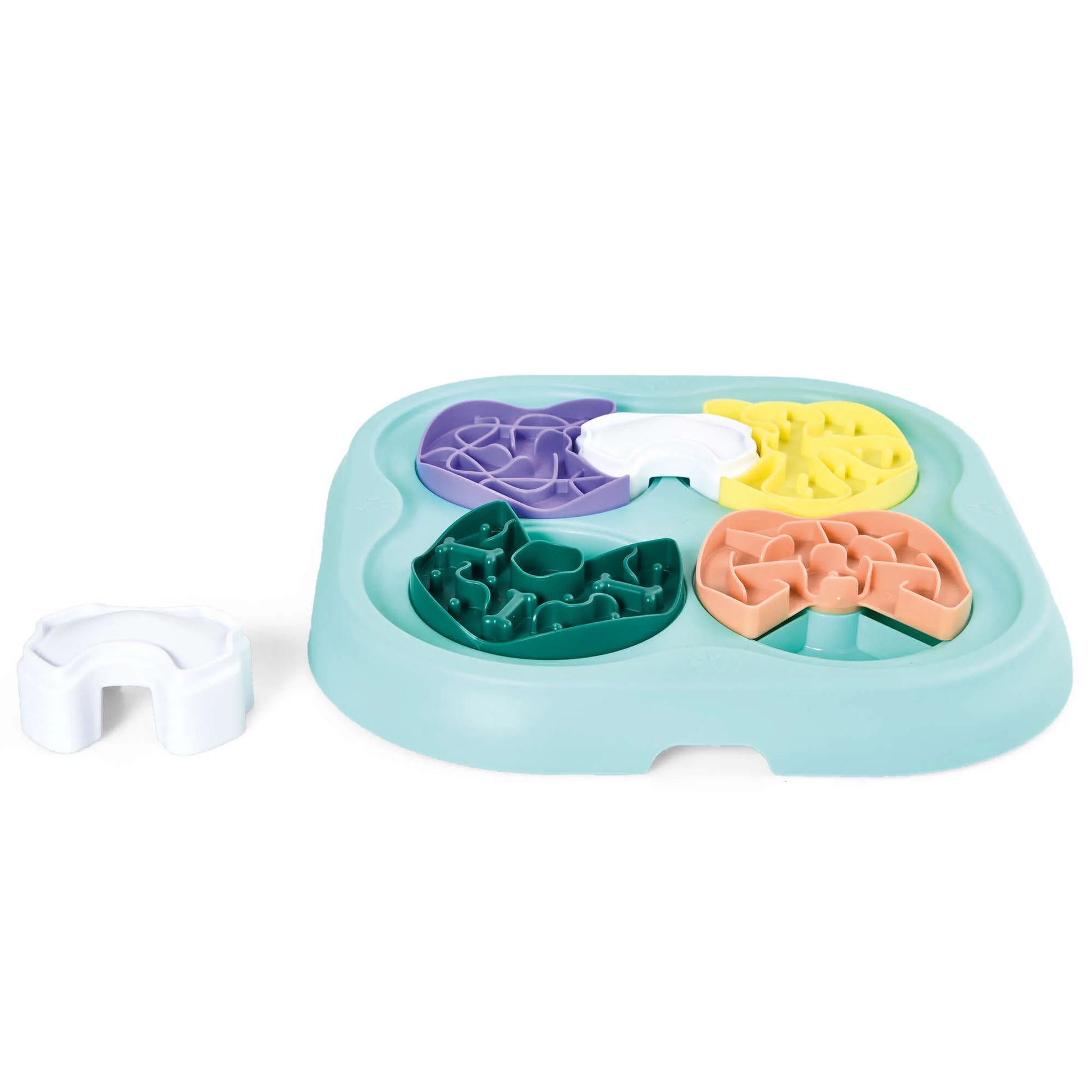XT-DOG's interactive anti-gluttony feeder is designed to help anxious dogs eat more slowly, avoiding problems such as dangerous gastric torsion. It has multiple internal compartments that can be filled with the dog's favorite food or snacks. Your pet will have to turn the top puzzle disc to find its reward, providing good mental and physical stimulation while staying entertained.