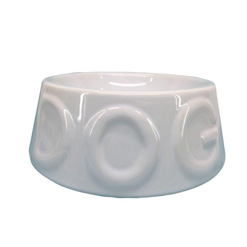 Made of ceramic, this dog bowl combines strength, durability, and ease of maintenance. It also doesn't retain dirt, making it even more practical. This aesthetically pleasing accessory features a "DOG" screen print. Its design and color will easily complement your interior decor.