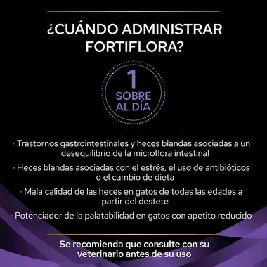 Each sachet of FortiFlora®(1 gram) contains a unique blend of beneficial bacteria strains proven to help your pet maintain healthy and strengthened intestinal function... and much more!