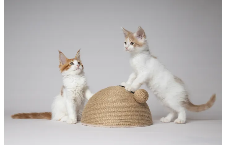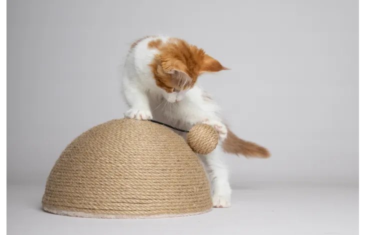 Give your cat a scratching paradise with the Scratch Dome! Made of durable jute rope for scratching and featuring a ball for extra fun.