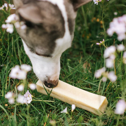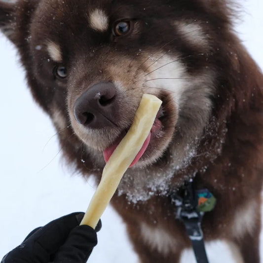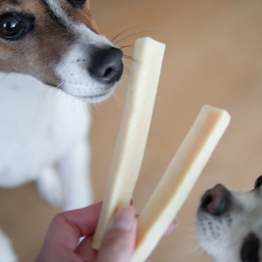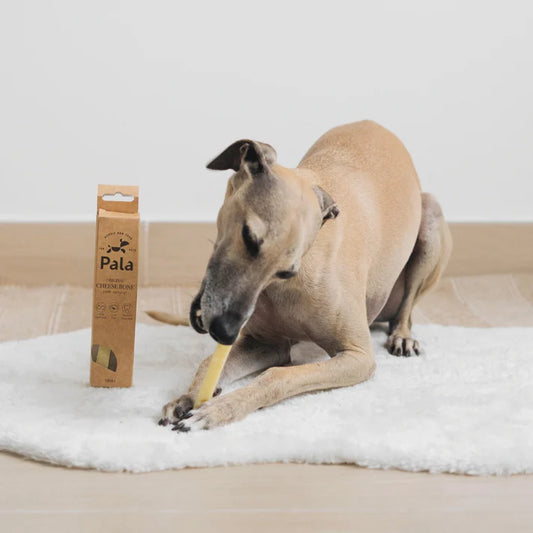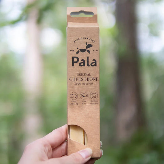 - ¡Precaución! El hueso de queso Pala es duro para masticar y puede no ser adecuado para masticadores agresivos o perros con dientes débiles o frágiles.
